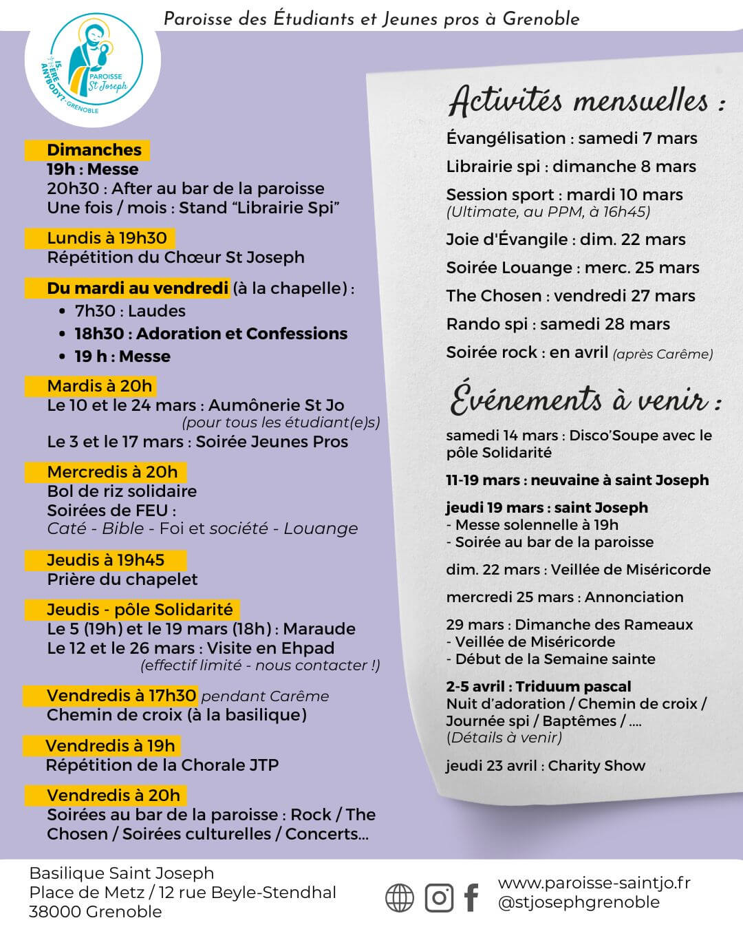 Tu trouveras ici différentes informations sur la vie de la paroisse. A bientôt !